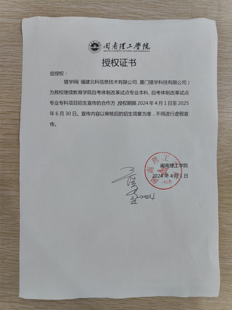 学生所学全部课程成绩合格后,将由闽南理工学院或闽南师范大学颁发全国统一印制、教育部电子注册的高等教育自学考试本科文凭。